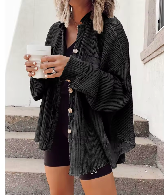 The Haven Knit Shirt combines elevated comfort with everyday versatility. Crafted from a premium waffle-knit cotton blend, it offers a beautifully textured feel that’s soft, breathable, and gentle on the skin. The button-front design allows effortless layering, while the relaxed silhouette drapes naturally for a laid-back yet refined look.